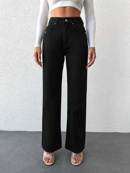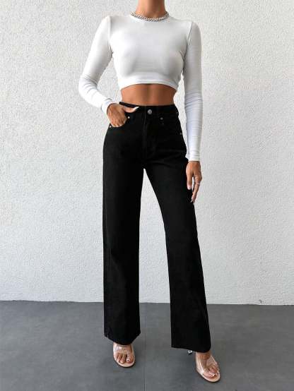 A staple for any wardrobe, these premium black wide leg jeans offer all-day comfort in a stylish fit. Made of quality denim, they're perfect for creating an effortless but chic outfit. Look stylish while staying comfortable!