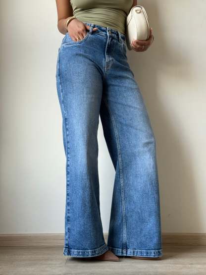 These Classic Blue Wide Leg Jeans are a staple in any wardrobe. With their timeless color and flattering wide leg cut, they offer both style and comfort. Made with high quality denim, they are durable and long-lasting. Perfect for any occasion, these jeans are a must-have for any fashion-savvy individual.