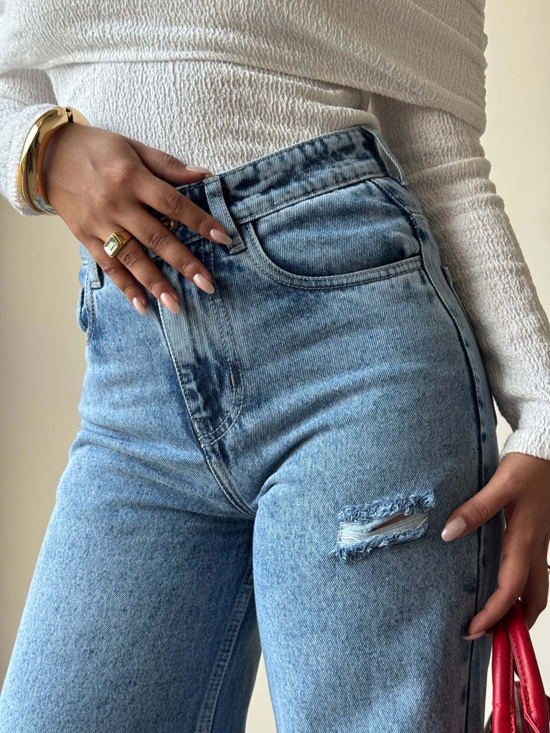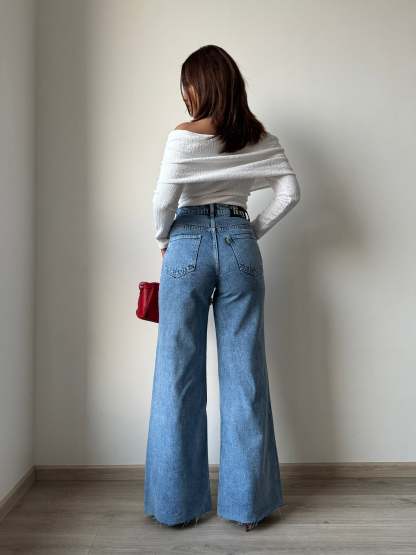 Expertly crafted for style and comfort, these Raw Rip Stone Blue Wide Leg Jeans are a must-have for any fashion-forward individual. Made with high-quality denim, these jeans offer both durability and a flattering wide leg design. Perfect for any occasion, these jeans are a versatile addition to any wardrobe.